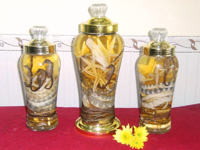 - Mỗi bình gồm 2 lít rượu, 4 cá ngựa, 2 rắn biển, sao biển và 1 số thảo dược khác.